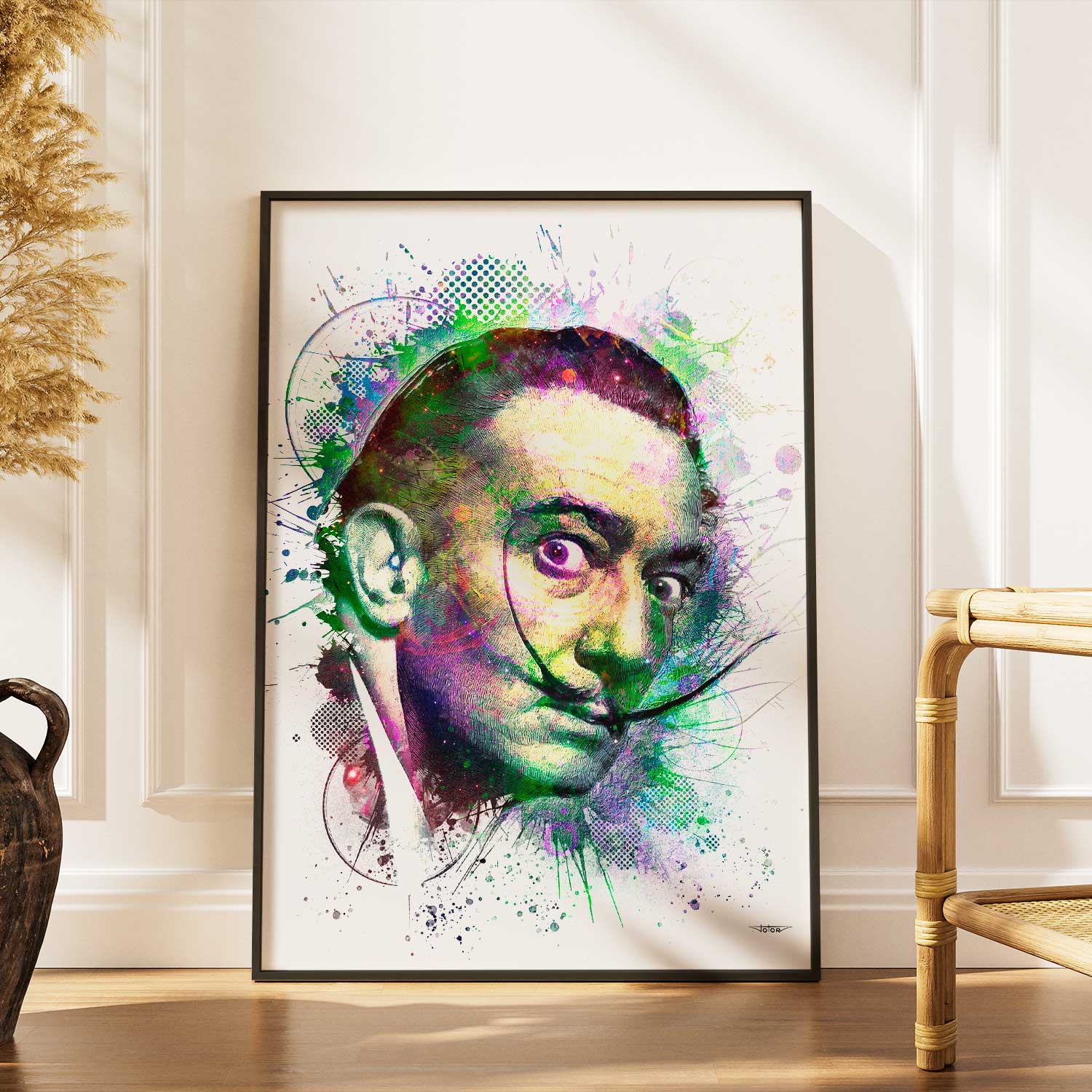 Le portrait de Salvador Dalí revisité ne cherche pas à accentuer le surréalisme. Il l’expose. Les contrastes sont renforcés, la matière du visage plus lisible, la mise en scène volontairement assumée. Le personnage n’est plus extravagant : il est observé comme un phénomène. Dalí n’est pas admiré. Il est analysé.